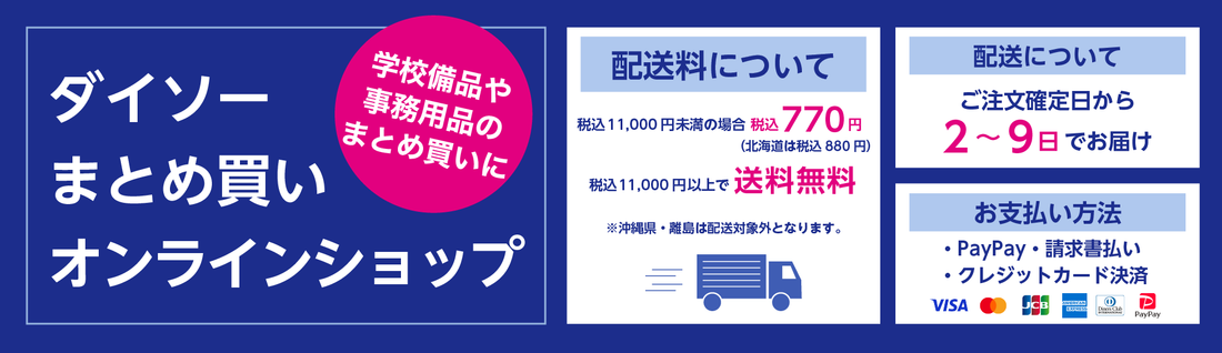 ダイソーオンラインショップは企業やまとめ買いしたい方向けのショップになります。