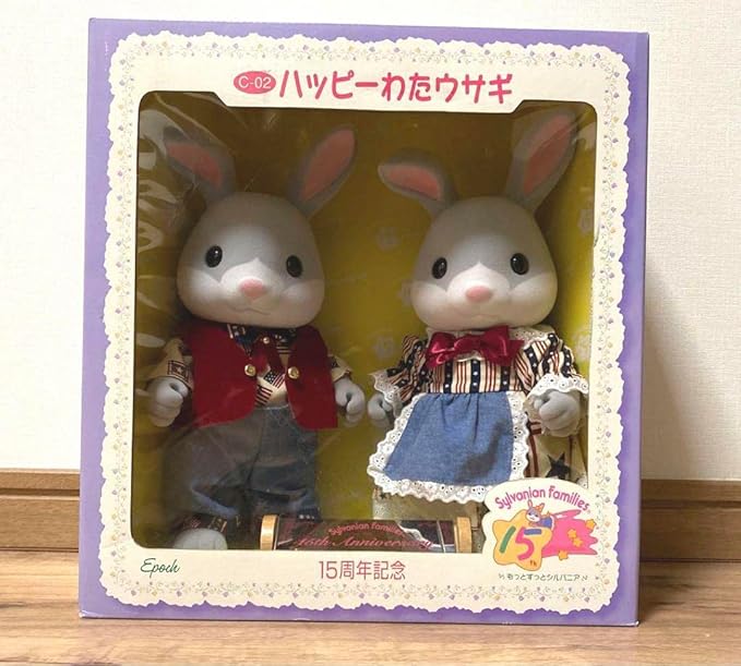 シルバニアファミリーが15周年を迎えたときの記念品であり、2体のウサギ人形がセットになっています。