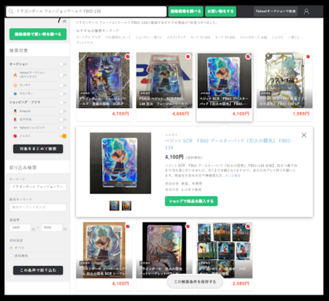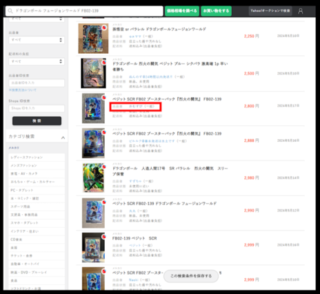 【2】STEP1で把握した商品の流通数や適正価格を元に各サイトで出品されている商品の値段を比較します。