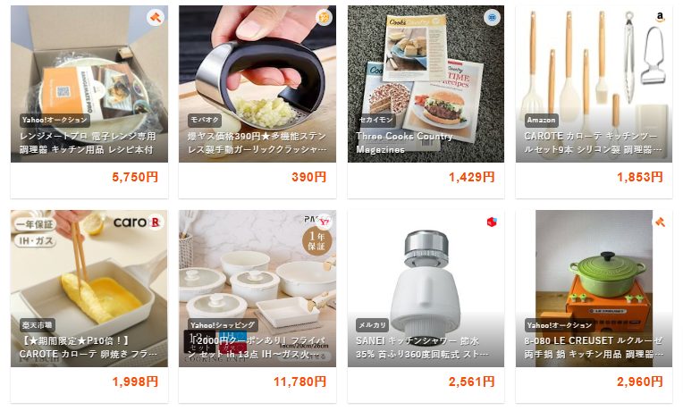 ・同じカテゴリーの商品がどれくらいの価格で販売されているかを確認します。