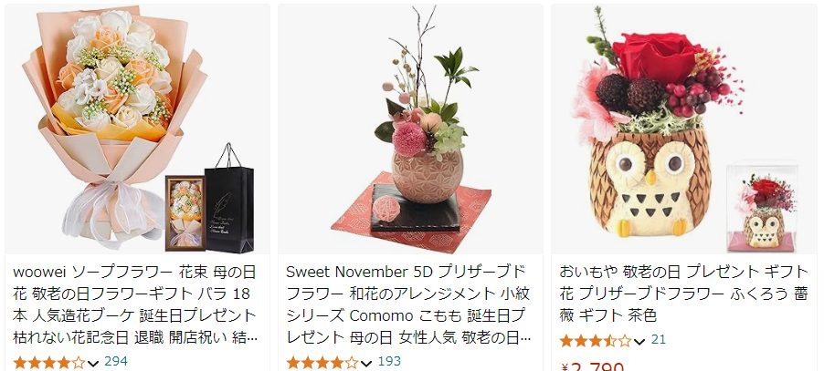 見た目が華やかな「フラワー系」は、お花好きなおじいちゃん、おばあちゃんにぴったりです。
