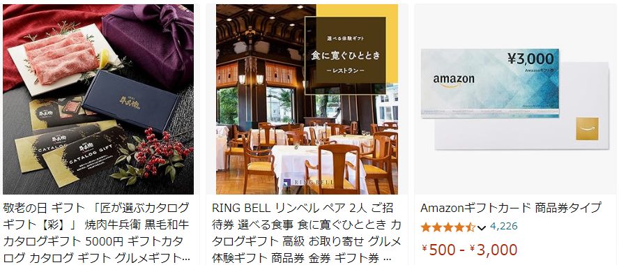 しかし、お花や食べ物、健康グッズなど、ジャンルや金額もさまざまなので