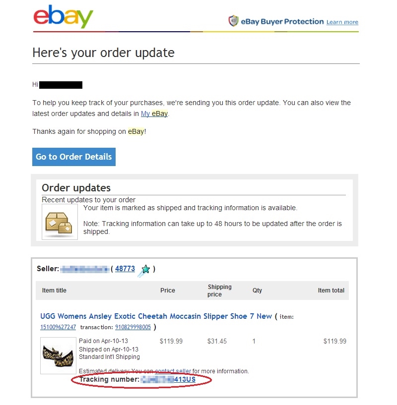 商品が発送されると、ebayからメールが来ます。