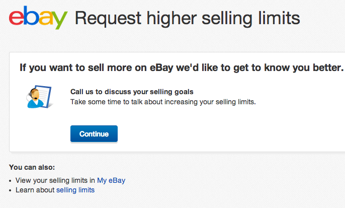 Request higher selling limits page