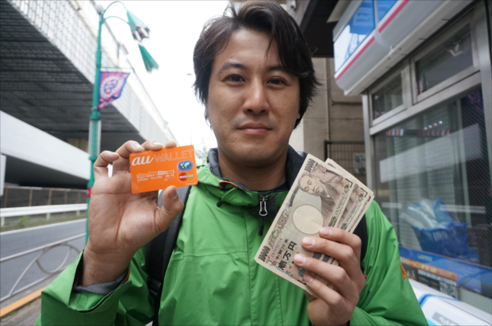 auウォレットカードに、ガチで僕の口座に振り込まれた、手数料を引いた落札金20万円を入金します(auウォレットにチャージできる上限が10万円までなので随時入金しながら企画を進める)