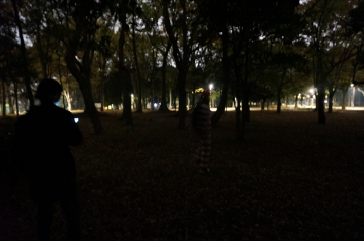 とりあえず見晴らしの良い公園に陣取って、変なのが近づいてきたらダッシュで逃げる、というざっくりした作戦を立てました。