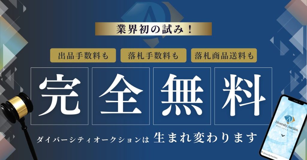 ダイバーシティオークションは、落札手数料、出品手数料が無料 0円