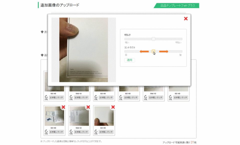 アップロードした画像の【明るさ】と【コントラスト】を編集することができます。