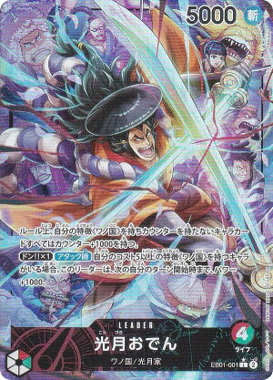 「光月おでん(L-P)」は、エクストラブースター『メモリアルコレクション【EB-01】』に収録されたワンピースカードゲームのリーダーカードです。
