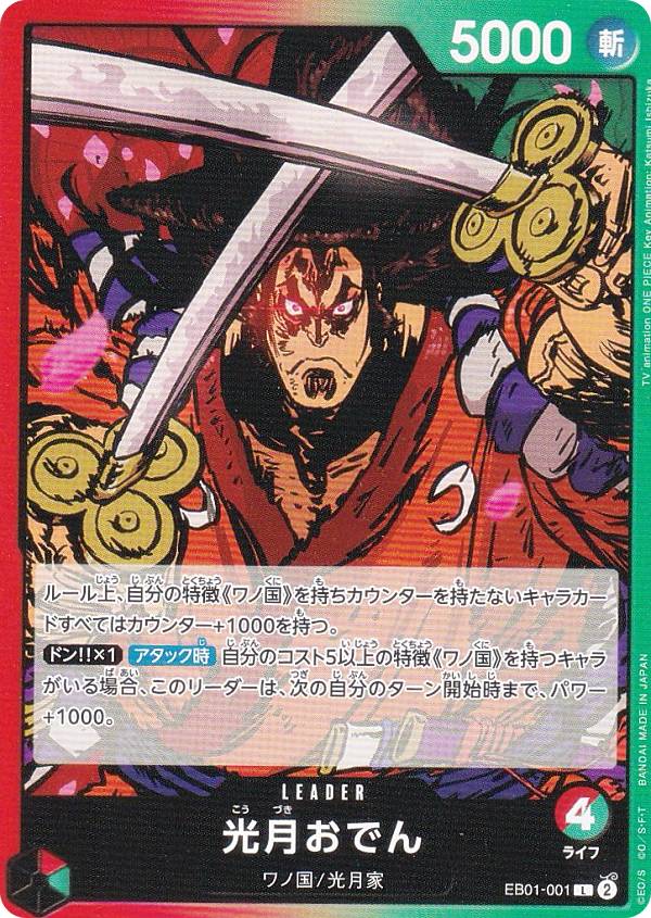 「光月おでん(L-P)」は、エクストラブースター『メモリアルコレクション【EB-01】』に収録されたワンピースカードゲームのリーダーカードです。
