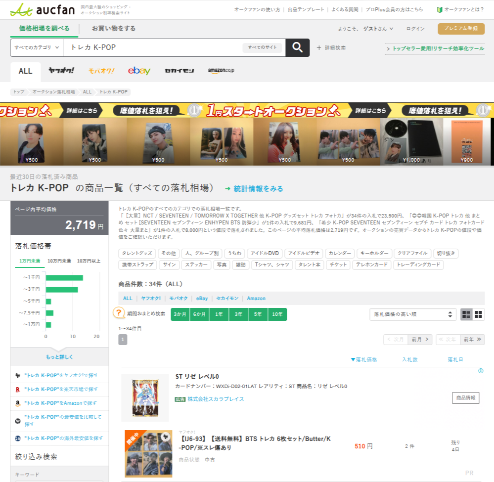 k-popのトレカはオークションにも出品されており、中古ショップと同じく推しのトレカを確実に入手できる手段です。