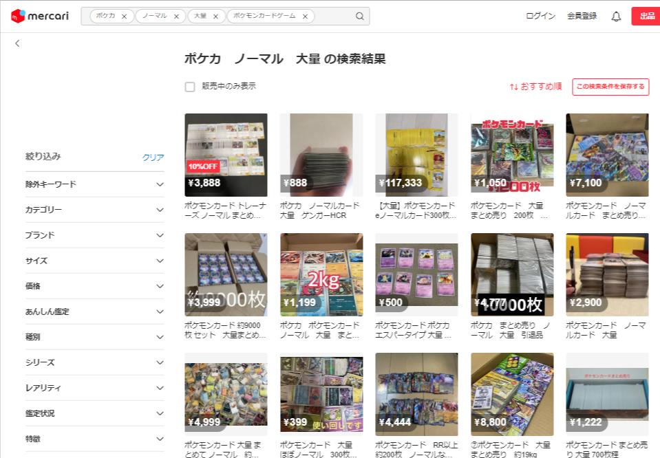 • メリット:価値のあるノーマルカードを見つけやすく、まとめ売りで金額がつきやすい