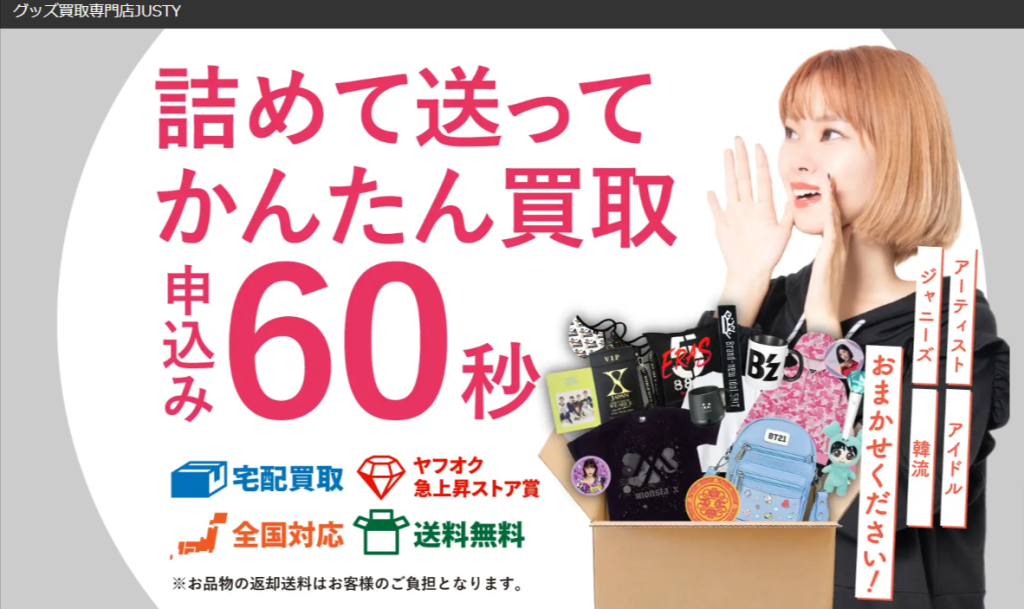 JUSTYはグッズ買取専門のサイトであり、宅配買取と出張買取を行っています。