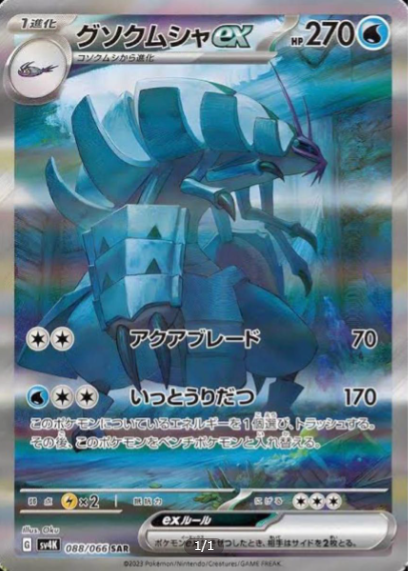 「グソクムシャex」は、2023年10月27日(金)に発売された強化拡張パック「スカーレット&バイオレット 拡張パック「古代の咆哮」」に収録された「水タイプ」のポケモンカードです。