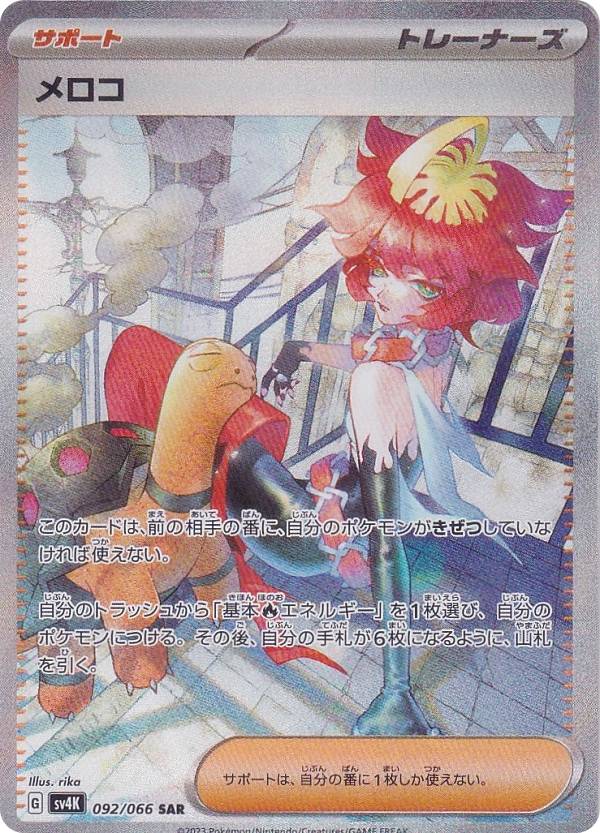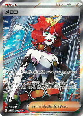 「メロコ」は、2023年10月27日(金)に発売された強化拡張パック「スカーレット&バイオレット 拡張パック「古代の咆哮」」に収録された「トレーナーズ・サポート」のポケモンカードです。