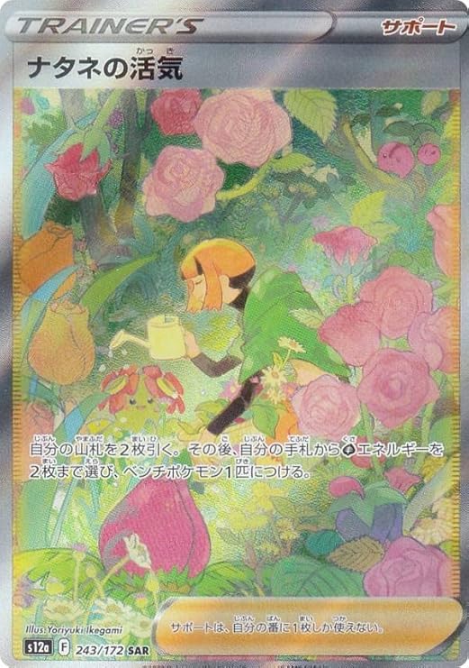 SAR(スペシャルアートレア)の中でも豪華なイラストが注目を集めたカードであり、価格相場でもその影響から値段が付くカードです。